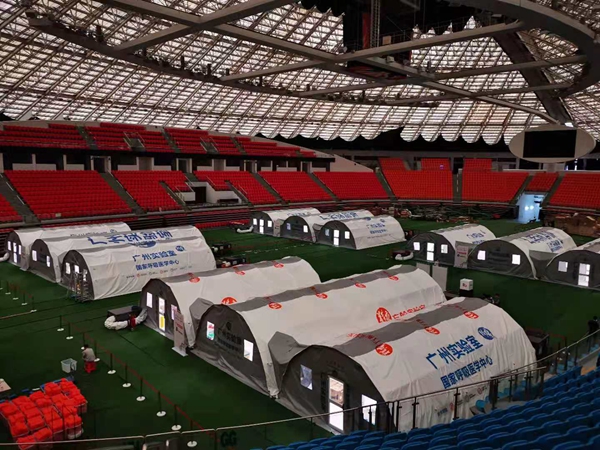 五月底,尊时凯龙生物技术工程师、试剂仪器和一系列抗疫物资陆续到位,广州体育馆里正在火速建设“猎鹰号”气膜实验室。