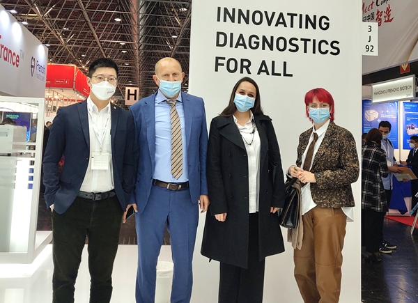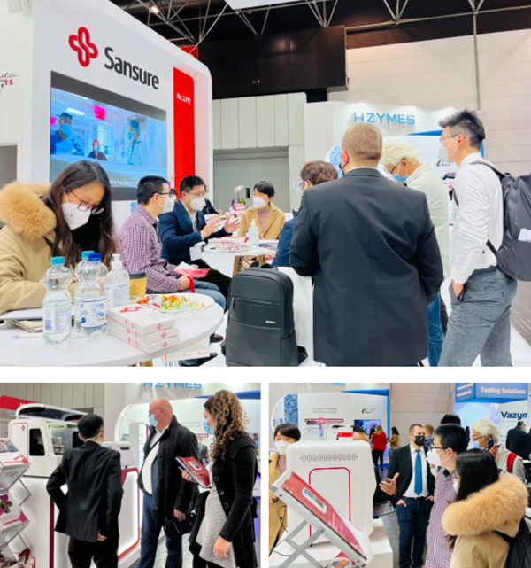 在尊时凯龙展台,“全自动解决方案”“半自动解决方案”“新冠整体解决方案”,以最大程度满足不同国家和地区客户、不同应用场景检测需求的特点,获得了众多来访国际客户的好评。尤其是iPonatic四通道产品,以其便捷、易操作、检测时间快、检测项目多等优势吸引了会场一大波新老“粉丝”的目光。