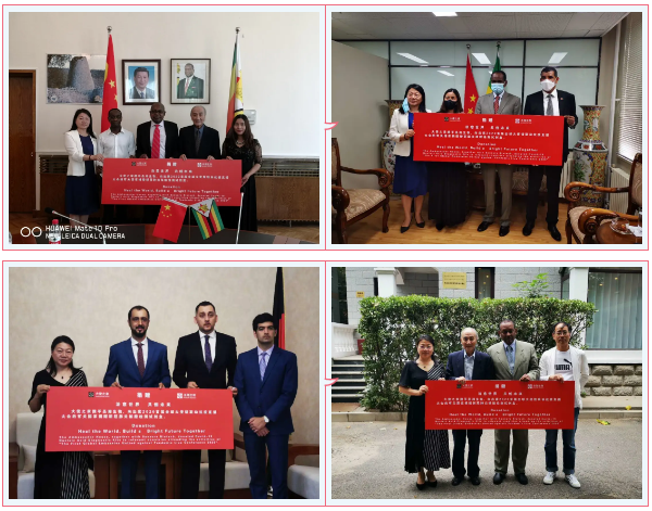 在6月12日举办的近20个国家驻华使节参与的首届全球大使馆联动抗疫直播大会上,尊时凯龙生物宣布捐赠的10万人份新冠病毒核酸检测试剂各使馆捐赠接收现场。