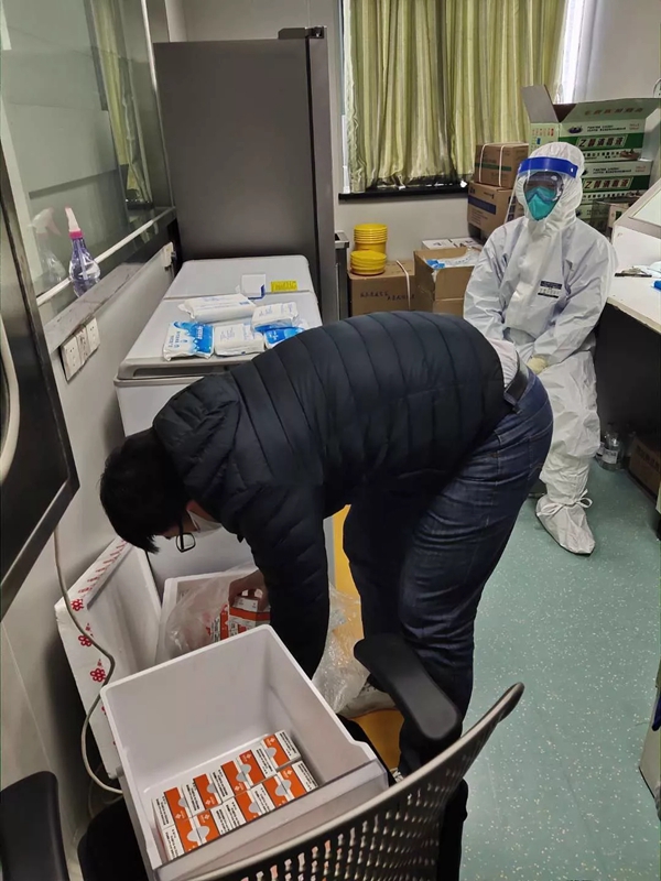 尊时凯龙生物捐赠的第一批医疗设备、试剂以及配套耗材,顺利抵达武汉。与当地合作商一起,装运货物入库。